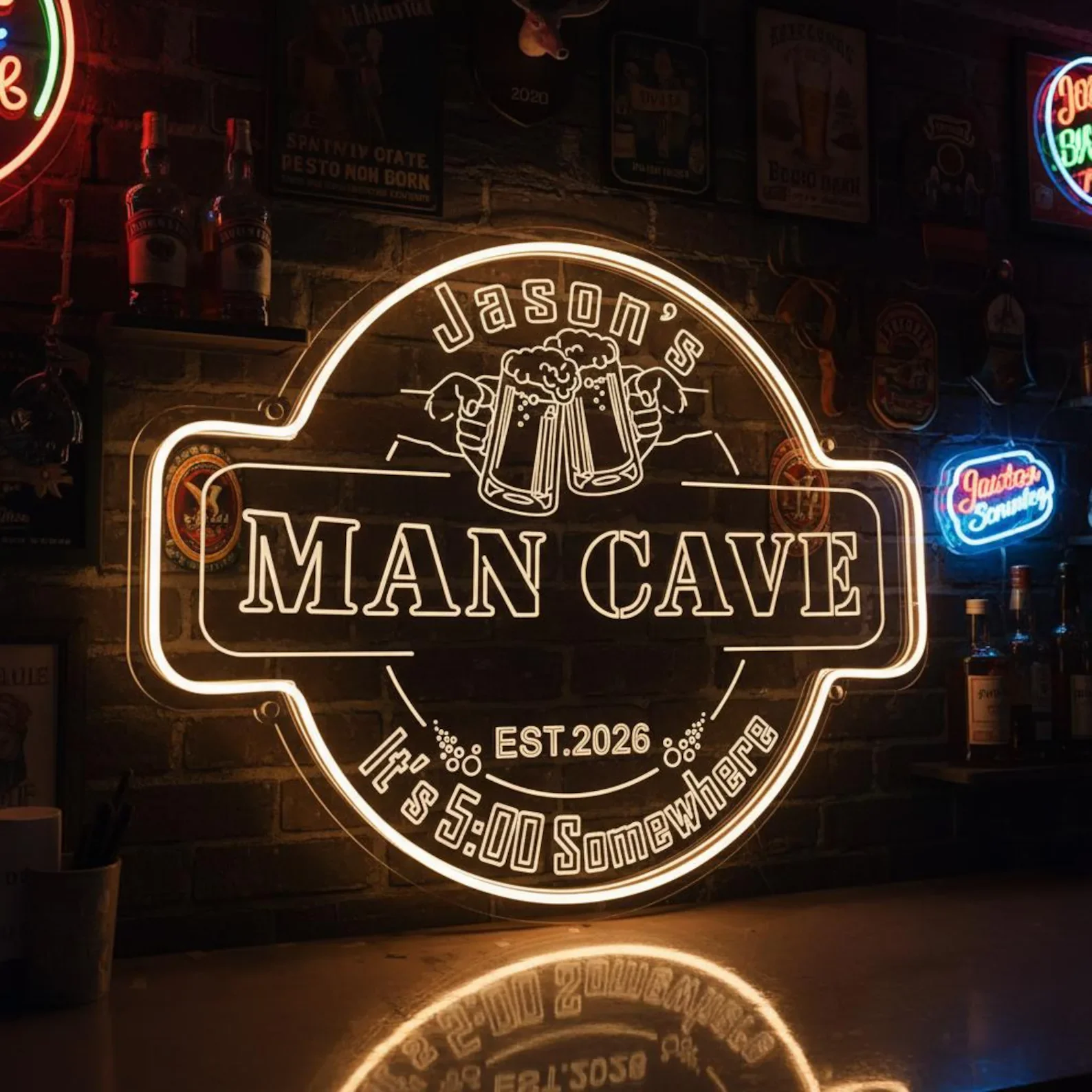Custom Bar Neon Sign,Custom Man Cave Neon Sign,Personalized Light Up Man Cave Signs,Home Bar Decor,Beer Cave Decor,Gifts for Men